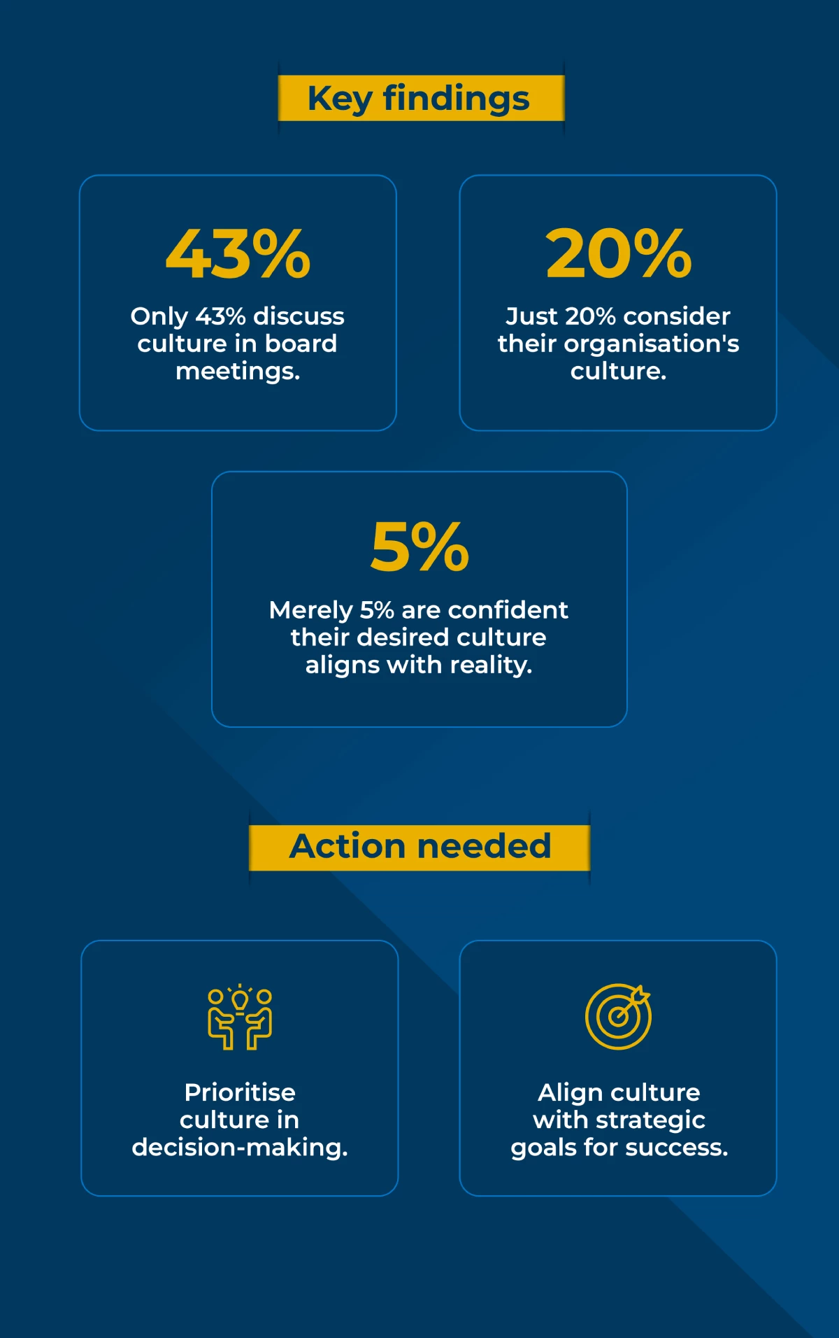 - Only 43% discuss culture in board meetings.